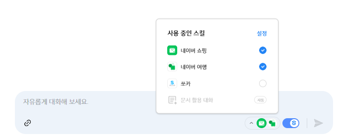 클로바X의 추가 기능이 바로 '스킬' 입니다.