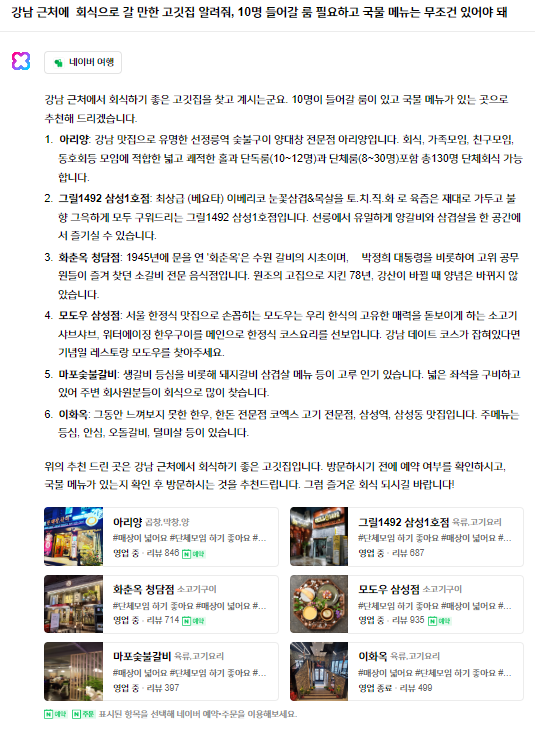클로바X는 네이버 여행정보 데이터베이스의 정보를 API로 호출,